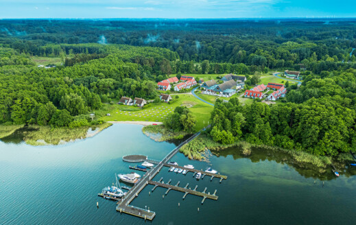 Die autofreie Anlage am Plauer See verbindet Zimmer, Apartments und Seevillen mit Wellness, Gastronomie und Freizeitangeboten für ein besonderes Urlaubserlebnis.