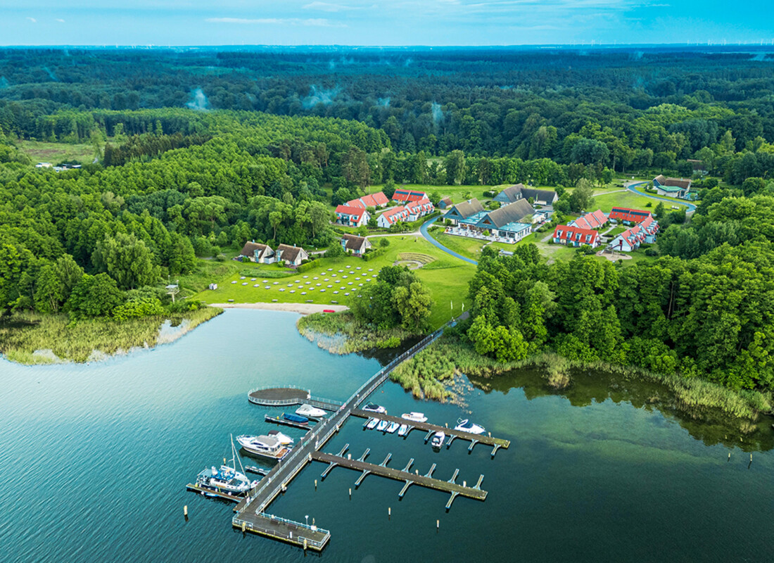 Zwischen Wald und Plauer See gelegen, bietet die autofreie Anlage moderne Zimmer, Apartments und exklusive Seevillen. Wellnessbereich mit Natur-Badeteich, hauseigene Gastronomie und vielfältige Freizeitangebote machen den Aufenthalt besonders.