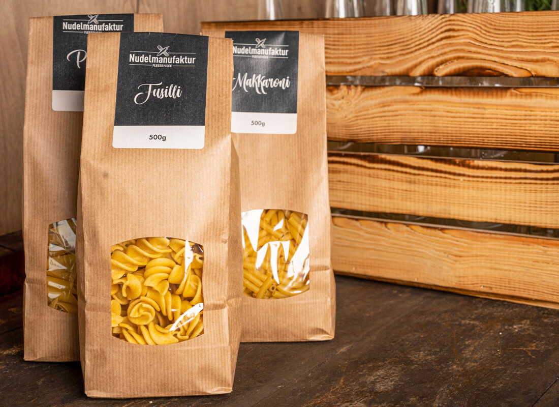 In der Nudelmanufaktur entstehen täglich frisch hergestellte Pasta-Spezialitäten, gefertigt mit Sorgfalt und besten Zutaten. Die vielfältigen Sorten werden nicht nur im eigenen Verkauf angeboten, sondern auch an die Pastaria geliefert – wo daraus abwechslungsreiche Gerichte mit kreativen Saucen und raffinierten Toppings entstehen.